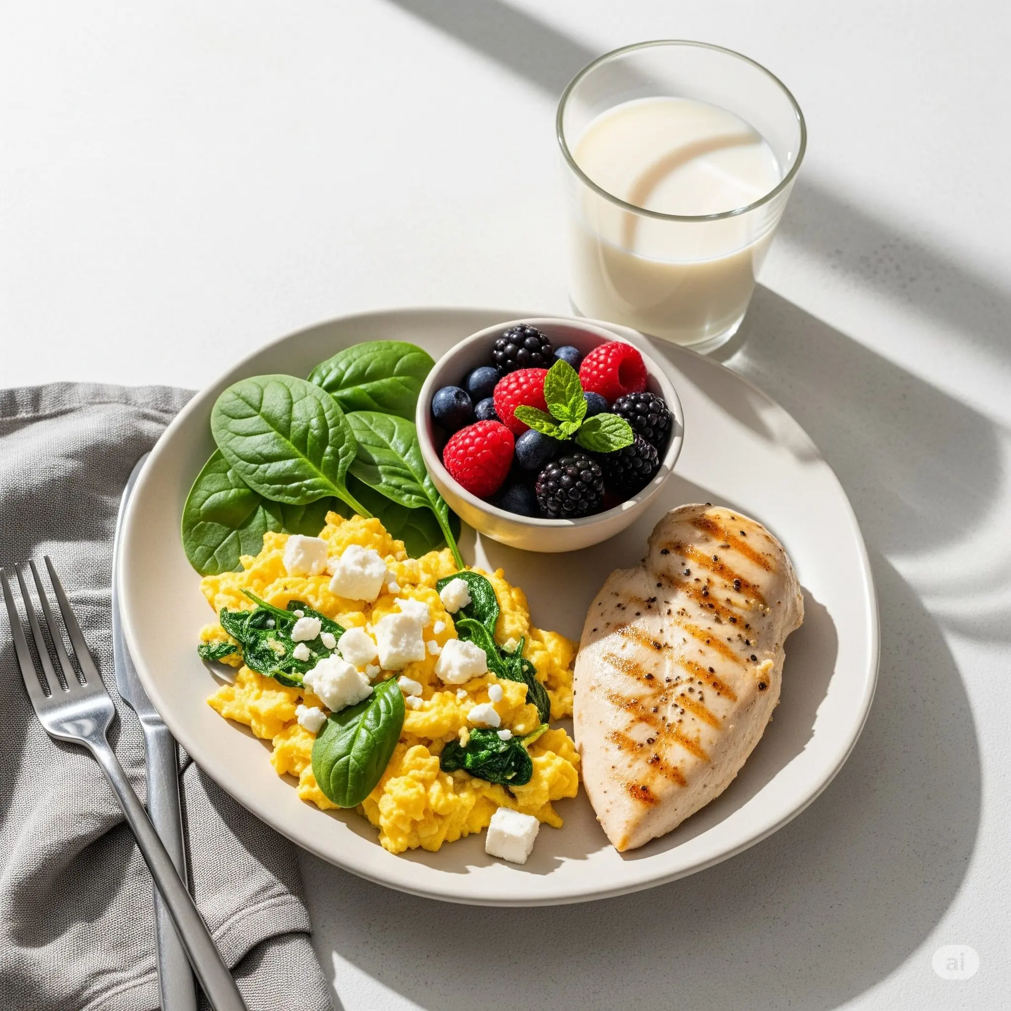 - 炭水化物や野菜もバランス良く: タンパク質だけでなく、エネルギー源となる炭水化物(全粒粉パン、オートミールなど)や、ビタミン・ミネラル・食物繊維が豊富な野菜や果物も一緒に摂ることで、より栄養バランスの整った朝食になります。